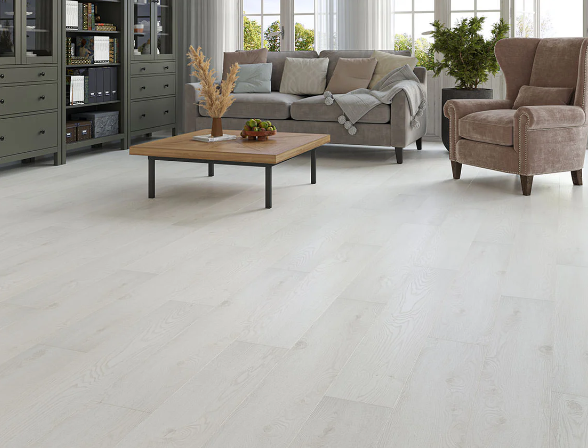 Avera 8mm Silver Grey Laminate Flooring brings a modern, elegant feel to any interior with its soft silver-grey tones and realistic woodgrain texture. The subtle V-grooved edges and detailed surface design capture the authentic look of real wood while maintaining a clean, contemporary finish. Each 191 × 1200 × 8 mm plank is crafted for durability and timeless appeal, making it a versatile choice for both classic and modern spaces.