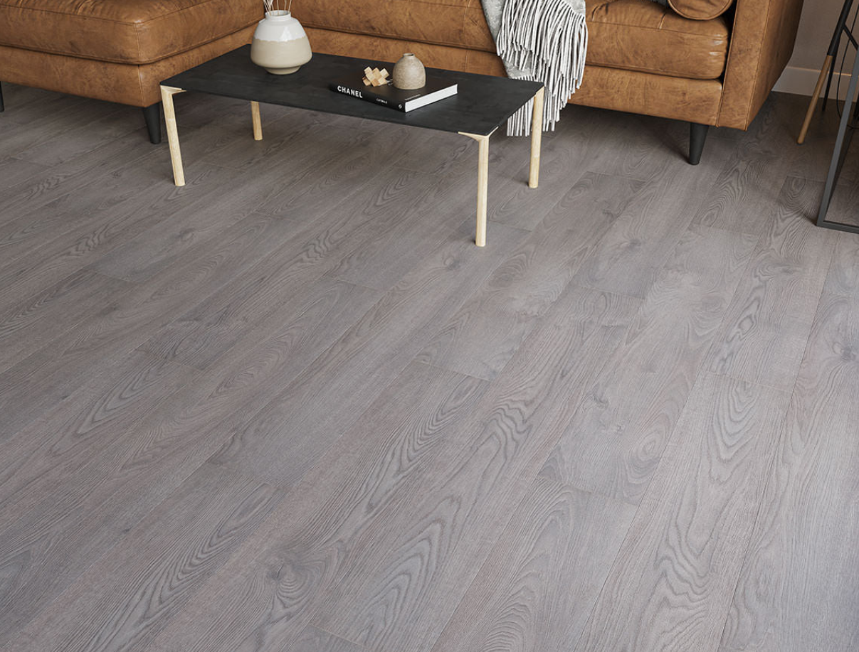 The Corven 8 mm Medium Grey Laminate exudes a refined, contemporary appeal—its medium grey oak finish brings a cool yet inviting tone to any room. The textured surface coupled with 4-V bevelled edges adds realism and depth to each plank, mimicking genuine hardwood. Measuring 191 × 1,200 mm with an 8 mm thickness, this flooring balances elegance and practicality for modern interiors.