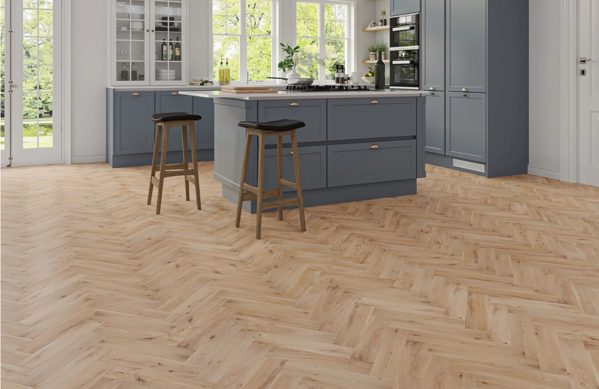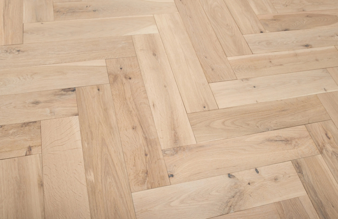Thistledown Solid Oak Herringbone brings a soft, natural feel to your space with its pale roasted tones and classic herringbone pattern. Made from premium solid oak, each 18 × 90 × 400 mm plank is wire-brushed and finished with an invisible oil to highlight the wood’s natural grain while keeping the look clean and understated.